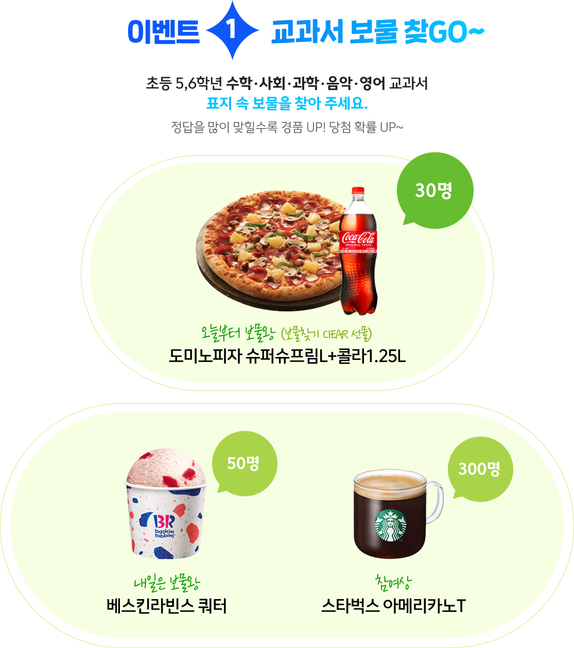 초등 5,6학년 수학·사회·과학·음악·영어 교과서 표지 속 보물을 찾아 주세요.