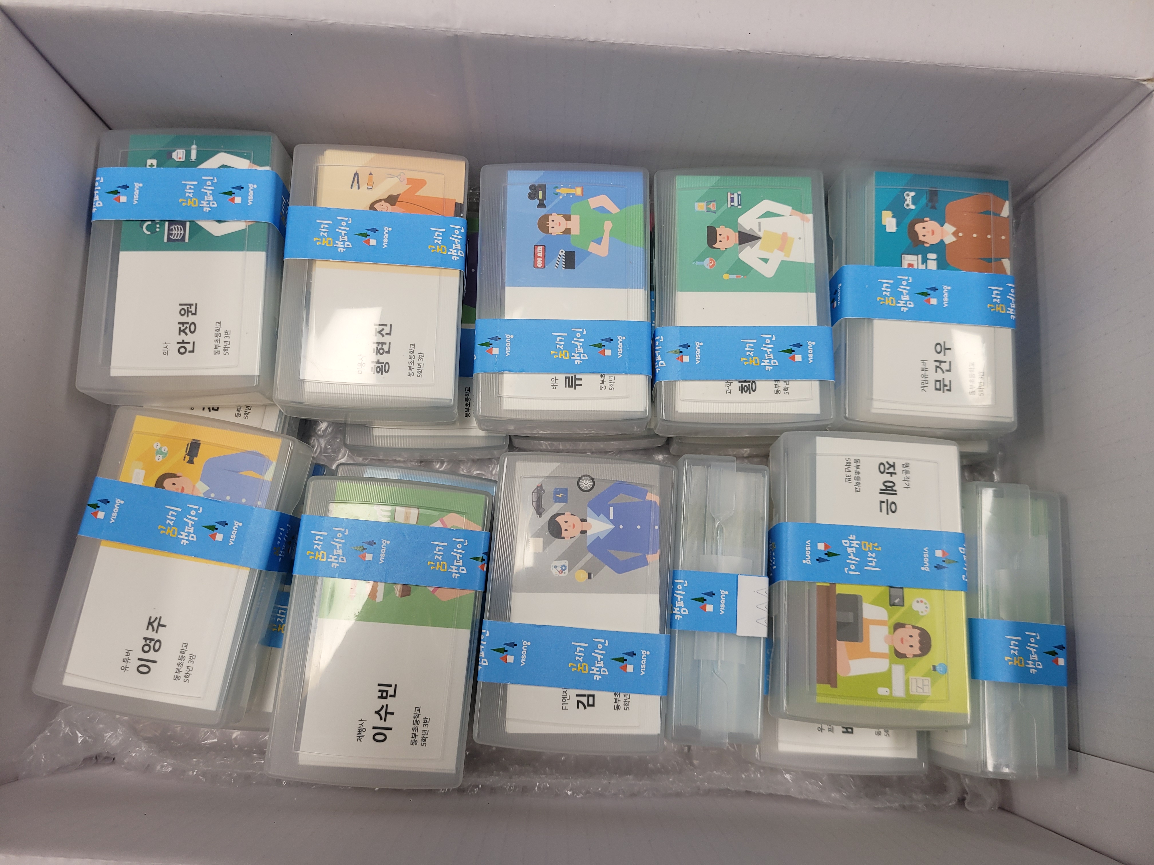 5학년 아이들과 함께 꿈명함 프로젝트에 참여했는데, 기대했던 것보다 반응이 훨씬 뜨거웠습니다. 막연하게만 생각하던 자신의 장래 희망이 실제 '명함'이라는 결과물로 나오니 아이들이 정말 신기해 하고 뿌듯해 하네요. 친구들과 서로 명함을 교환하며 서로의 꿈을 응원해 주는 모습도 참 보기 좋았습니다. 아이들에게 잊지 못할 특별한 추억을 만들어 주셔서 감사합니다. |