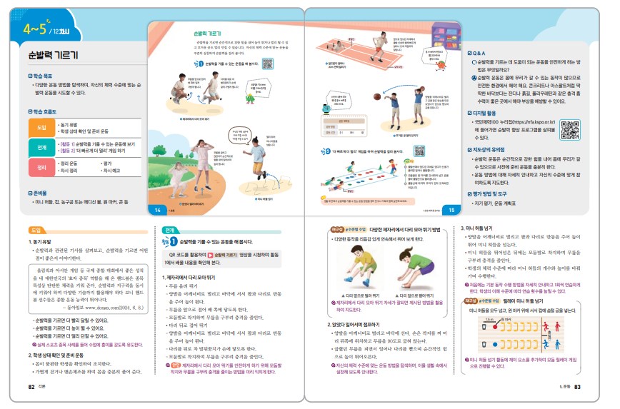 또 체육 교과에서 강조하는 기본 움직임 기술을 바탕으로 교과 내용을 재미있게 이해하도록 만들었는데욥.