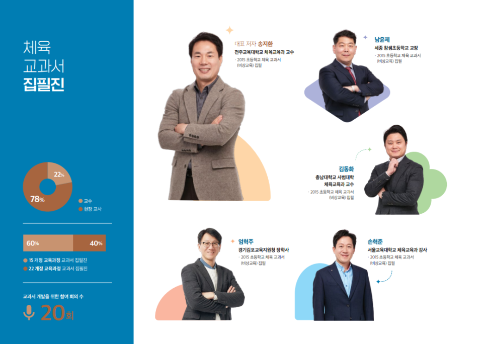 이 중에서는 2015년 개정 교육과정 체육 교과서 집필에 참여한 분들이 무려 60%를 차지하고 있습니답.