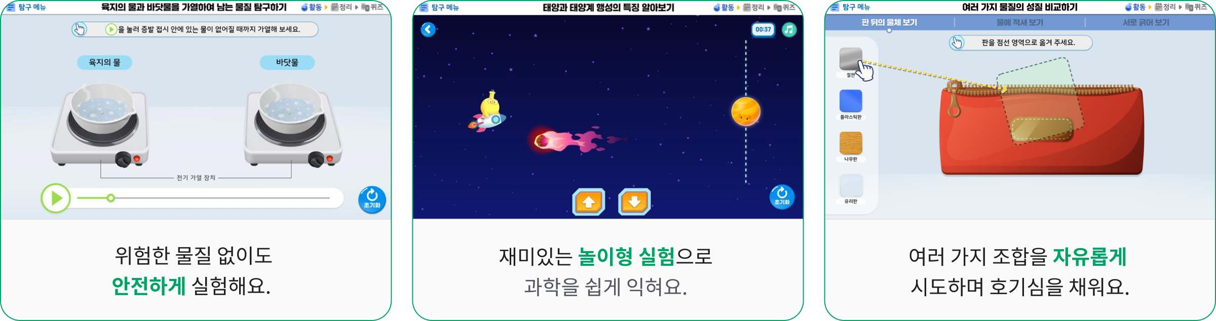 초등 교육 과정의 과학 개념을 가상의 환경에서 함께 호기심을 해결하고, 실험 설계 능력을 키울 수 있습니다.